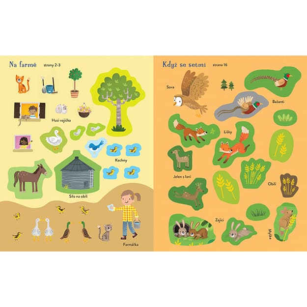 Samolepková knížka obsahuje 16 barevných stran a 8 stran samolepek k dolepení.