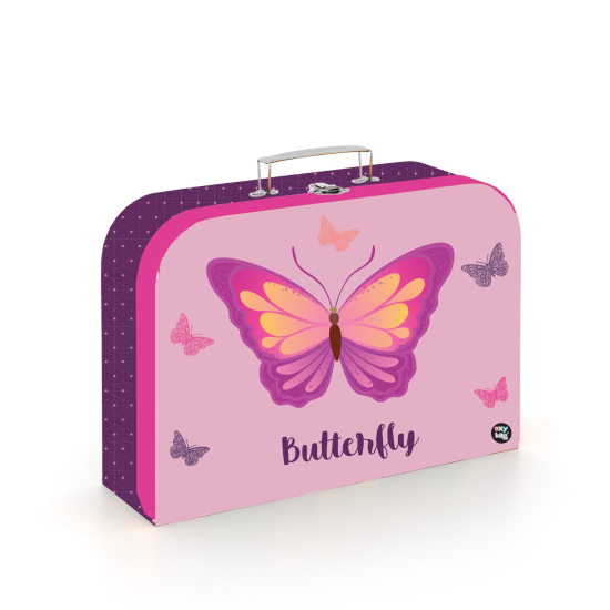 Praktický kufřík z odolného materiálu. Vhodný na úschovu drobných pomůcek, hraček, výtvarných potřeb atd. Zhotovený z kvalitní lepenky potažené laminem. Kovový zámeček, kovové nýty, papír, lepenka.