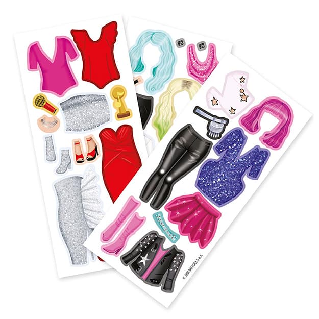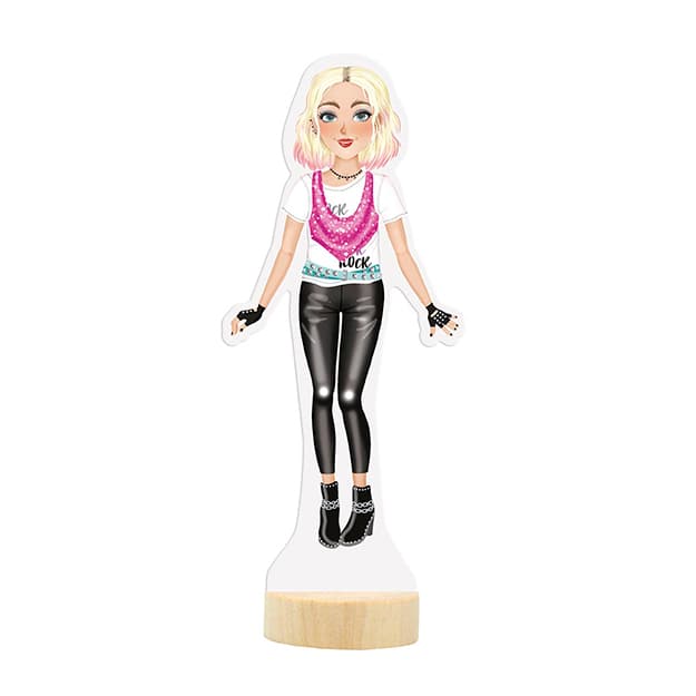 Balení obsahuje oblékací postavičku, 3 archy magnetických částí oblečení, bot a doplňků a dřevěný podstavec.