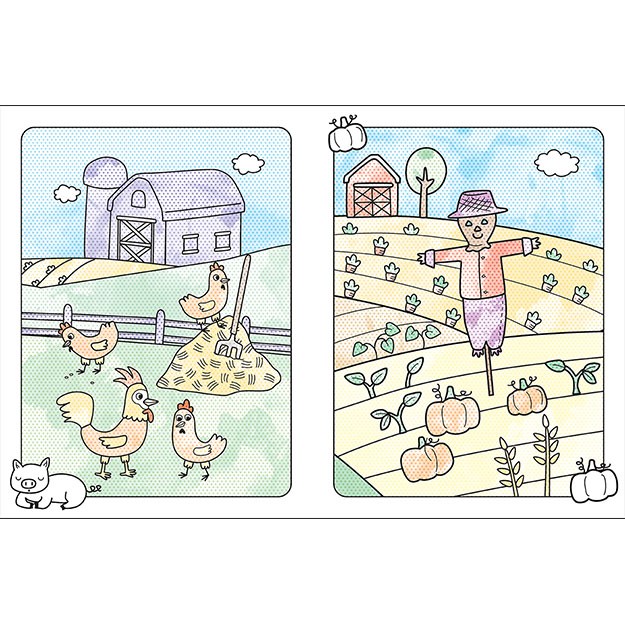 Omalovánky obsahují 23 kouzelných obrázků, k jejichž vybarvení stačí dětem pouze štětec a pár kapek vody. Stránky obsahují barevné tečky, které po rozetření obrázek probarví.