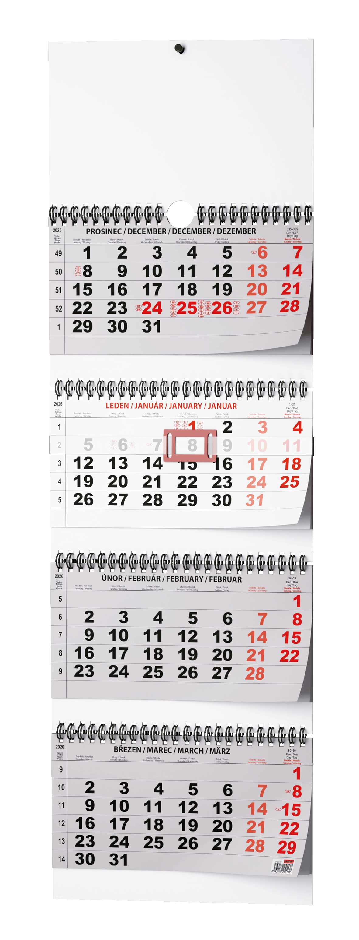 Nástěnný kalendář - Čtyřměsíční - skládaný (s mezinárodními svátky)