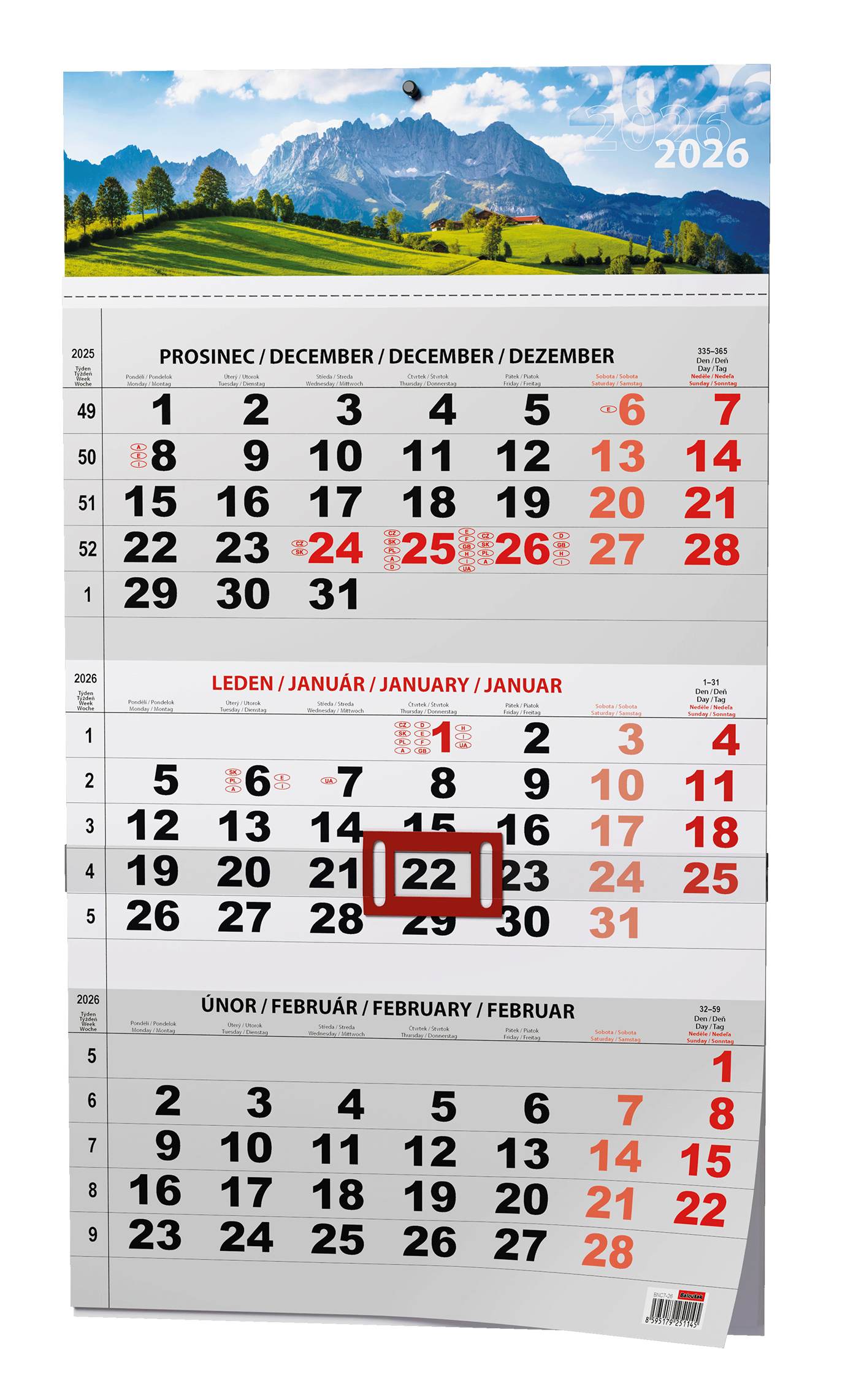 Nástěnný kalendář - Tříměsíční - A3 (s mezinárodními svátky) - černý - Příroda