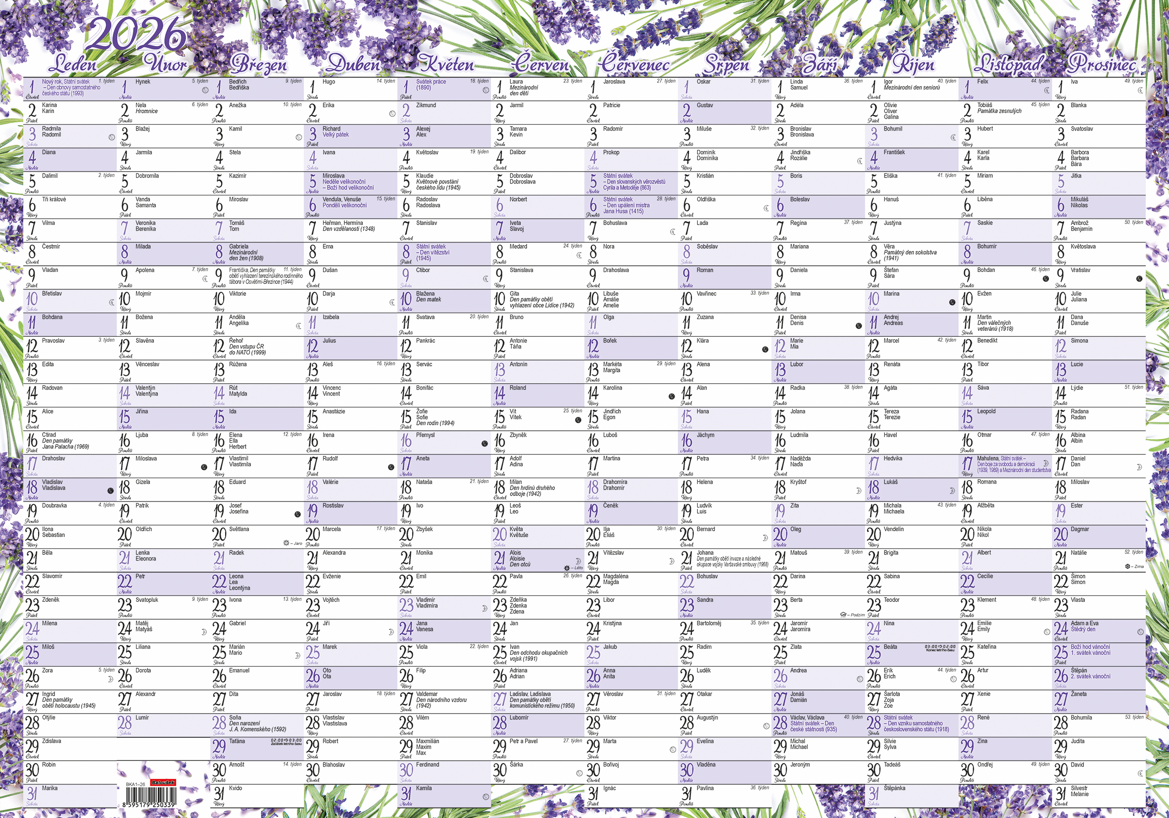 Nástěnný roční kalendář (600x420 mm) - Levandule