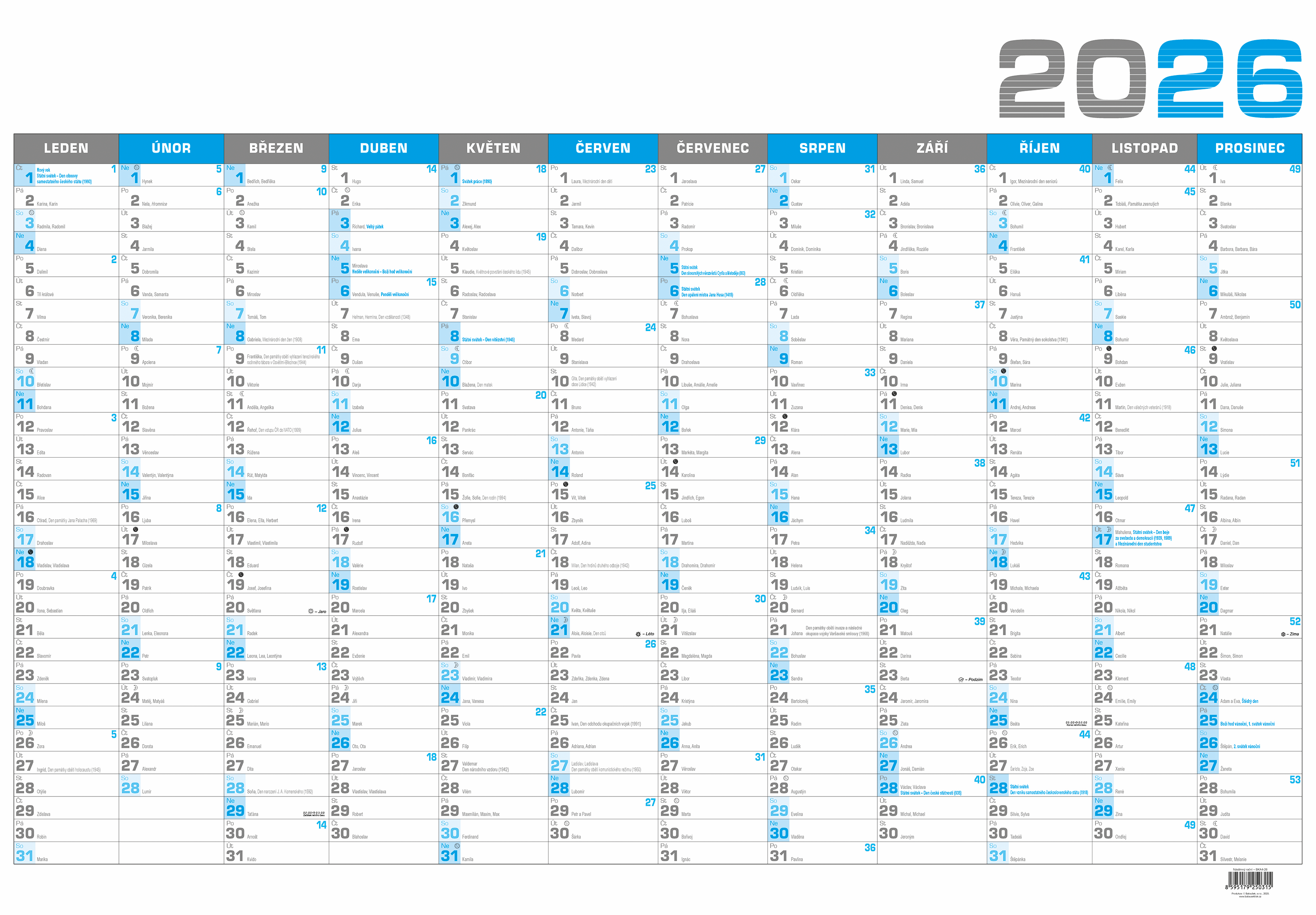 Nástěnný roční kalendář B1 - modrý