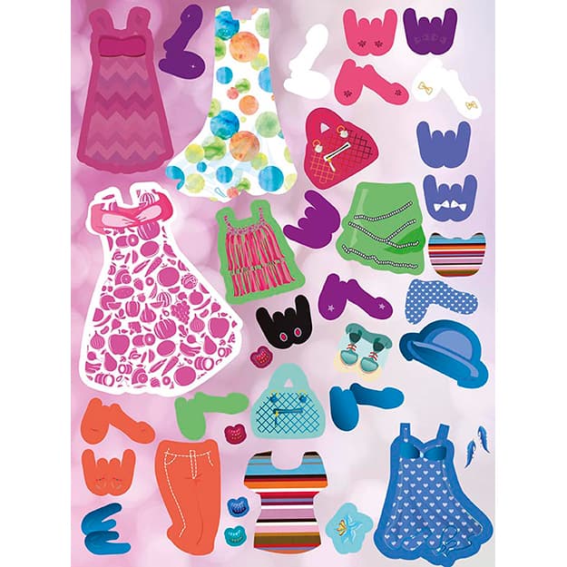 Samolepková knížka plná módy obsahuje 24 stran a více než 300 samolepek šatů, bot a doplňků.