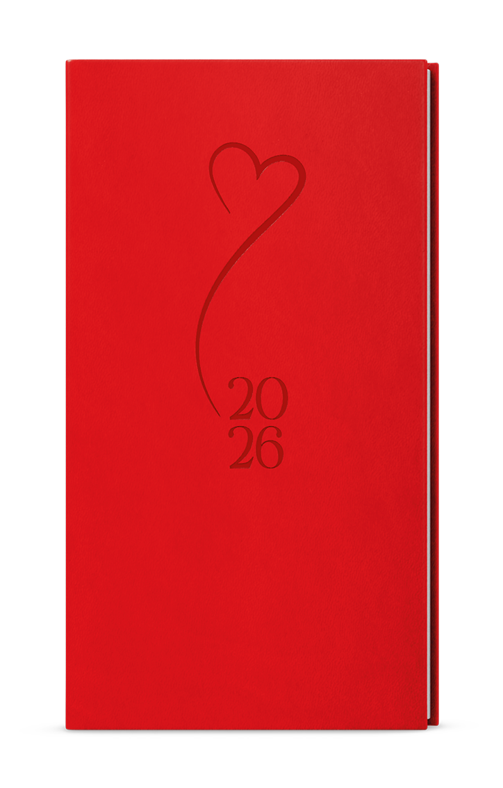 Týdenní diář - Jakub - Vivella s ražbou - kapesní - červená - Srdce