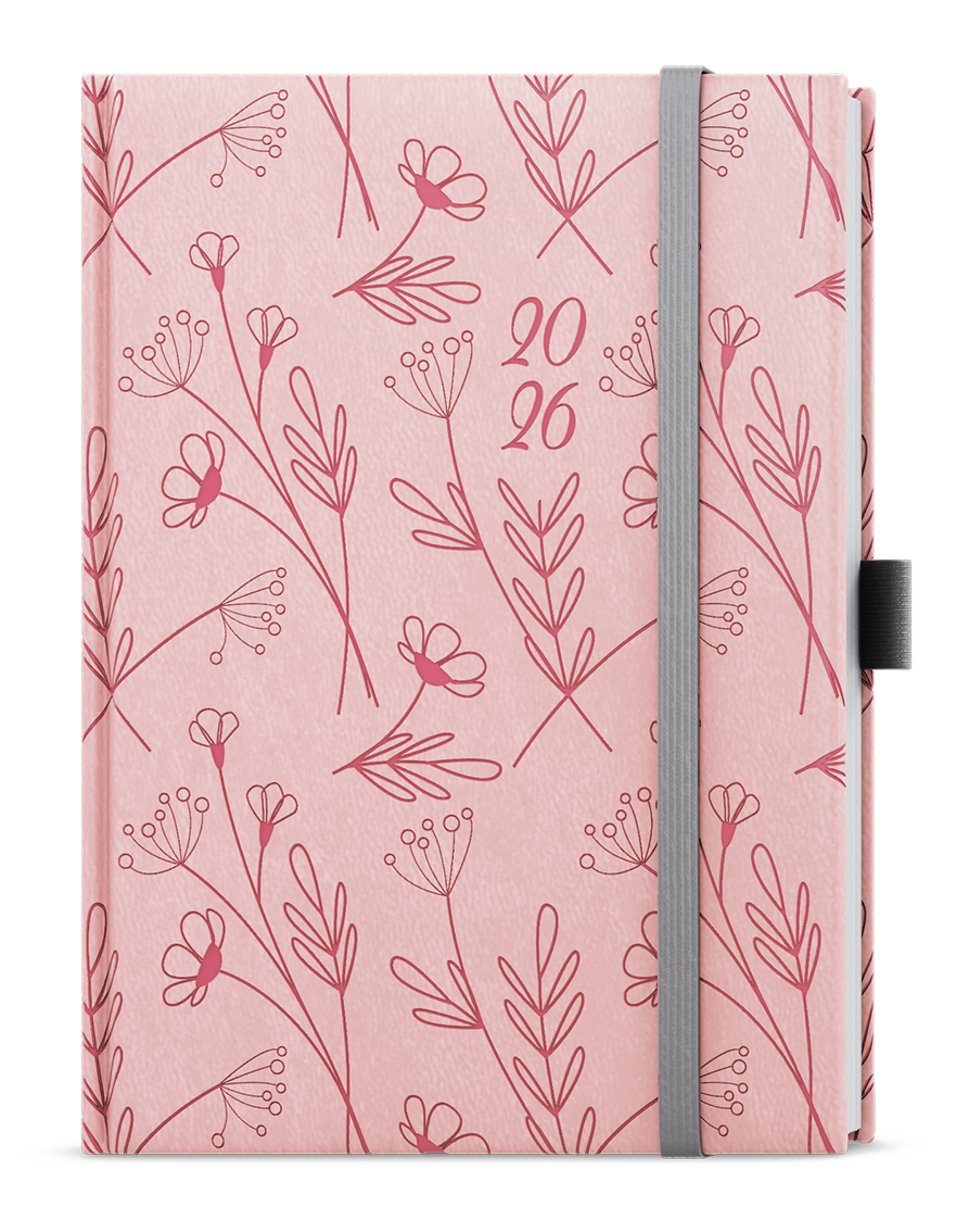 Týdenní diář - Prokop - Vivella extra - B6 - pastelová růžová - Kvítí